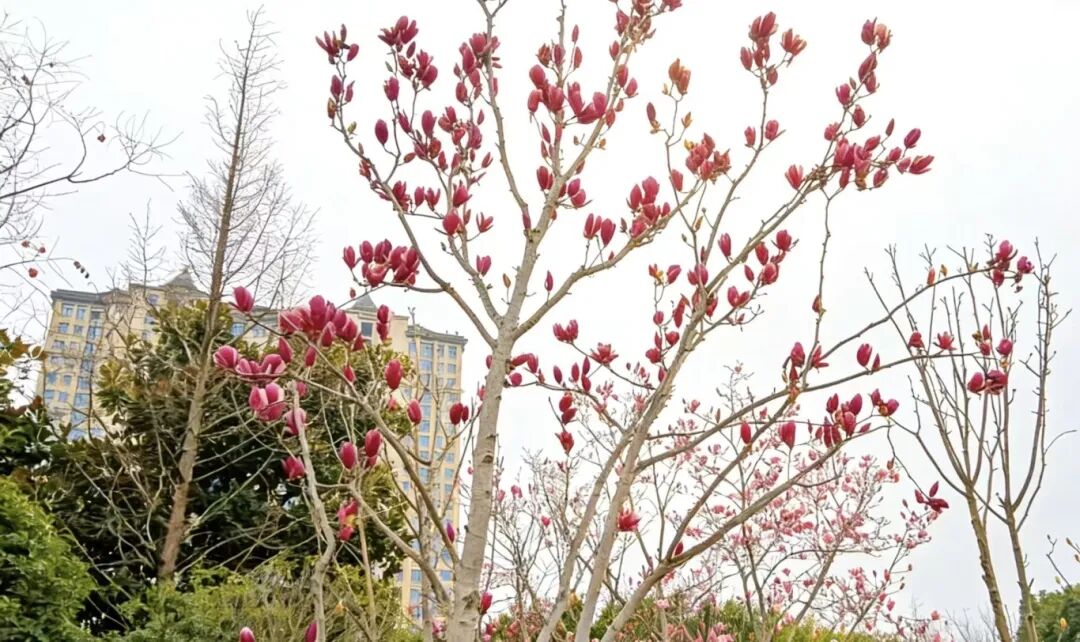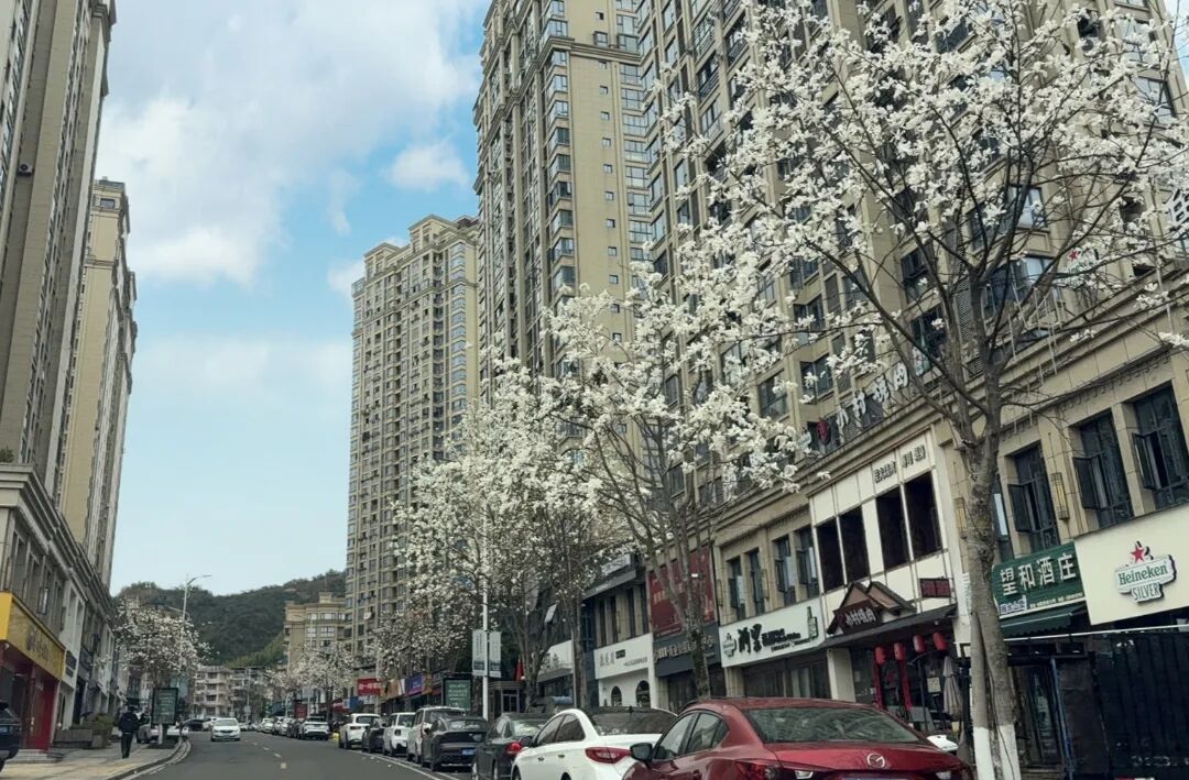 玉兰缀满街巷枝头,或盛放吐蕊,或含苞待放,素净雅致,与山城烟火相融,是初春最易邂逅的美好。