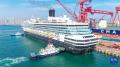 2月28日,“理想” 号邮轮完成常规坞修及保养任务,驶离中国船舶集团青岛北海造船有限公司码头。新华社发(张进刚 摄)