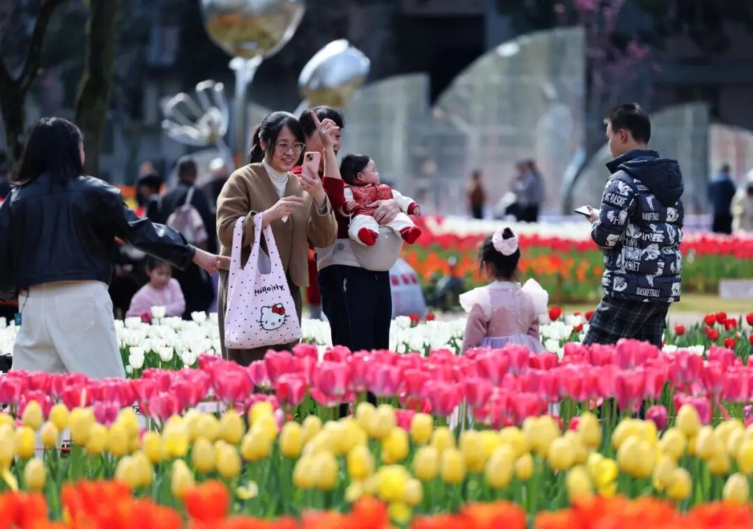 2月28日、3月1日,温州马鞍池公园郁金香花展的视频接连登上《中国国家地理》和 《人民日报》“早安中国”视频号,向全国网友展现了早春温州的满园芳华!