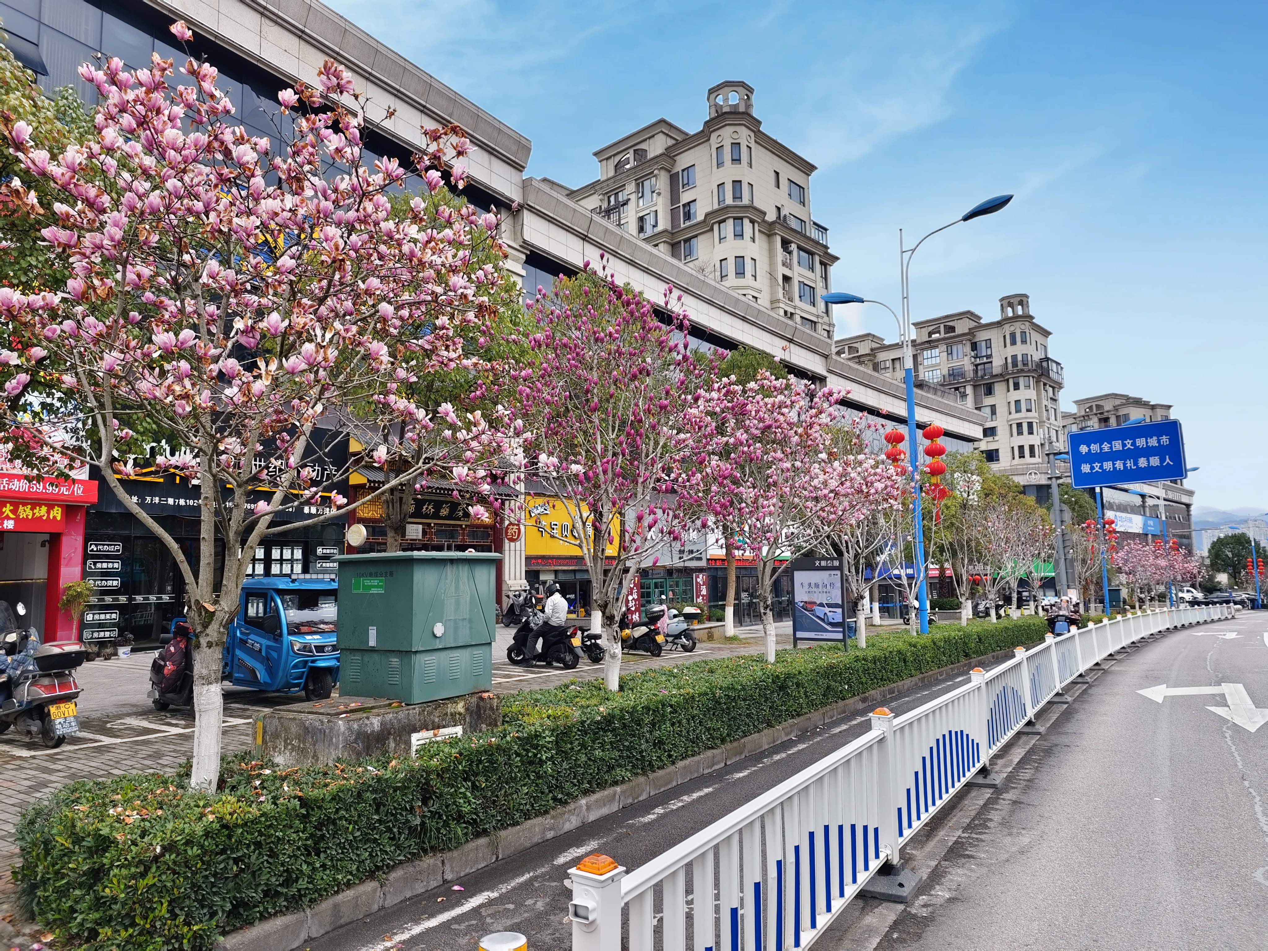 泰顺县城的文祥大道,最近也被春天“点靓”了——道路两旁,玉兰正静静绽放。
