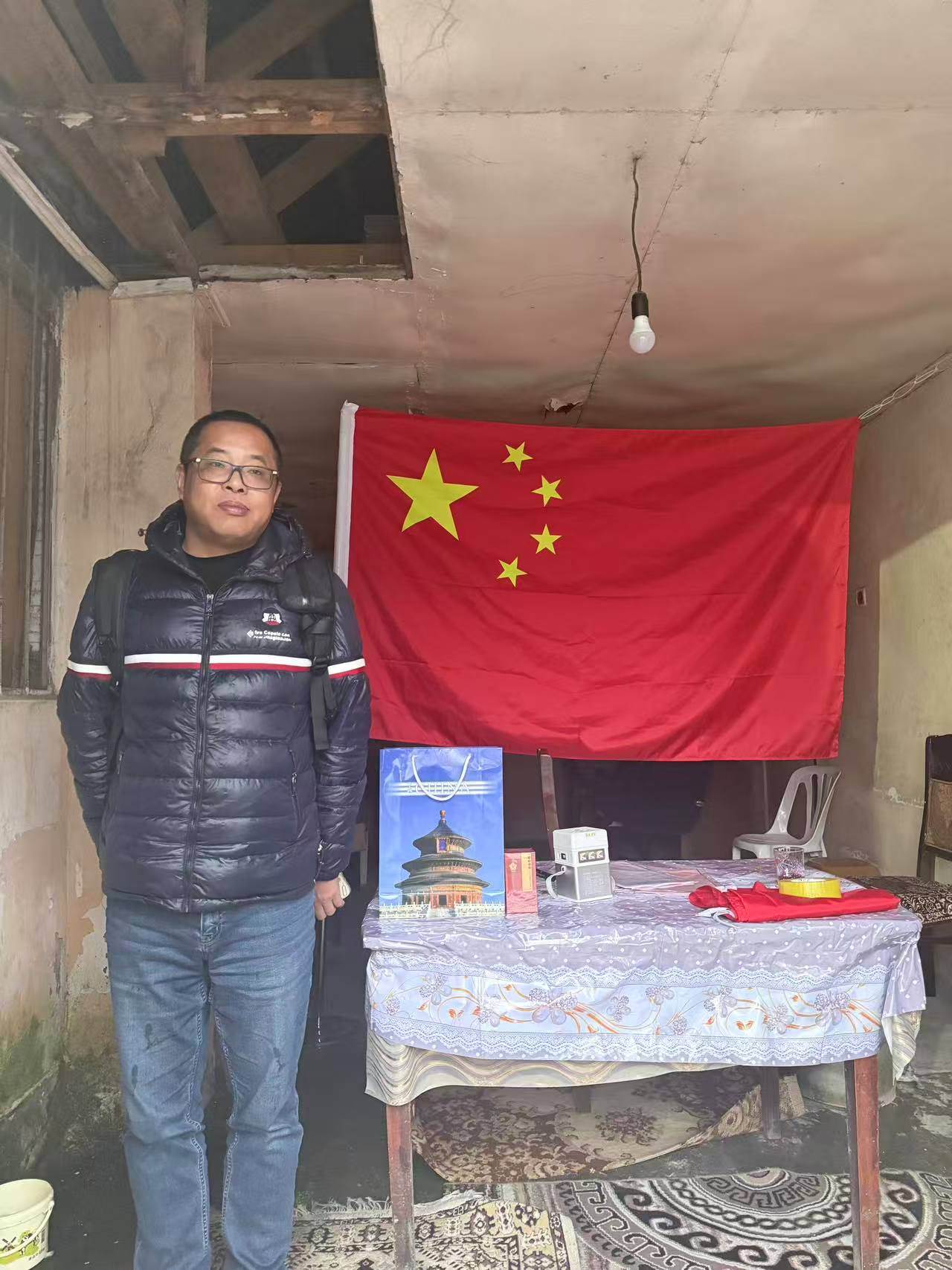 缪国庆在阿斯塔拉口岸的临时接应点。受访者供图