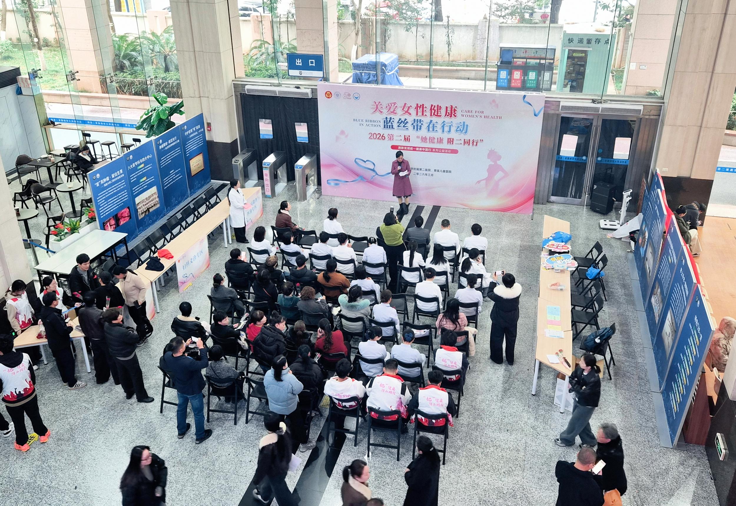 温州网讯 在“三八”国际妇女节来临之际,3月6日,温州医科大学附属第二医院在南浦部门诊大厅启动第二届“她健康 附二同行”暨“关爱女性健康 蓝丝带在行动”消除宫颈癌公益活动,通过免费筛查、多学科义诊、健康科普等多种形式,为女性同胞送上专属健康大礼,以实际行动推进宫颈癌防治工作,筑牢女性全周期健康防线。