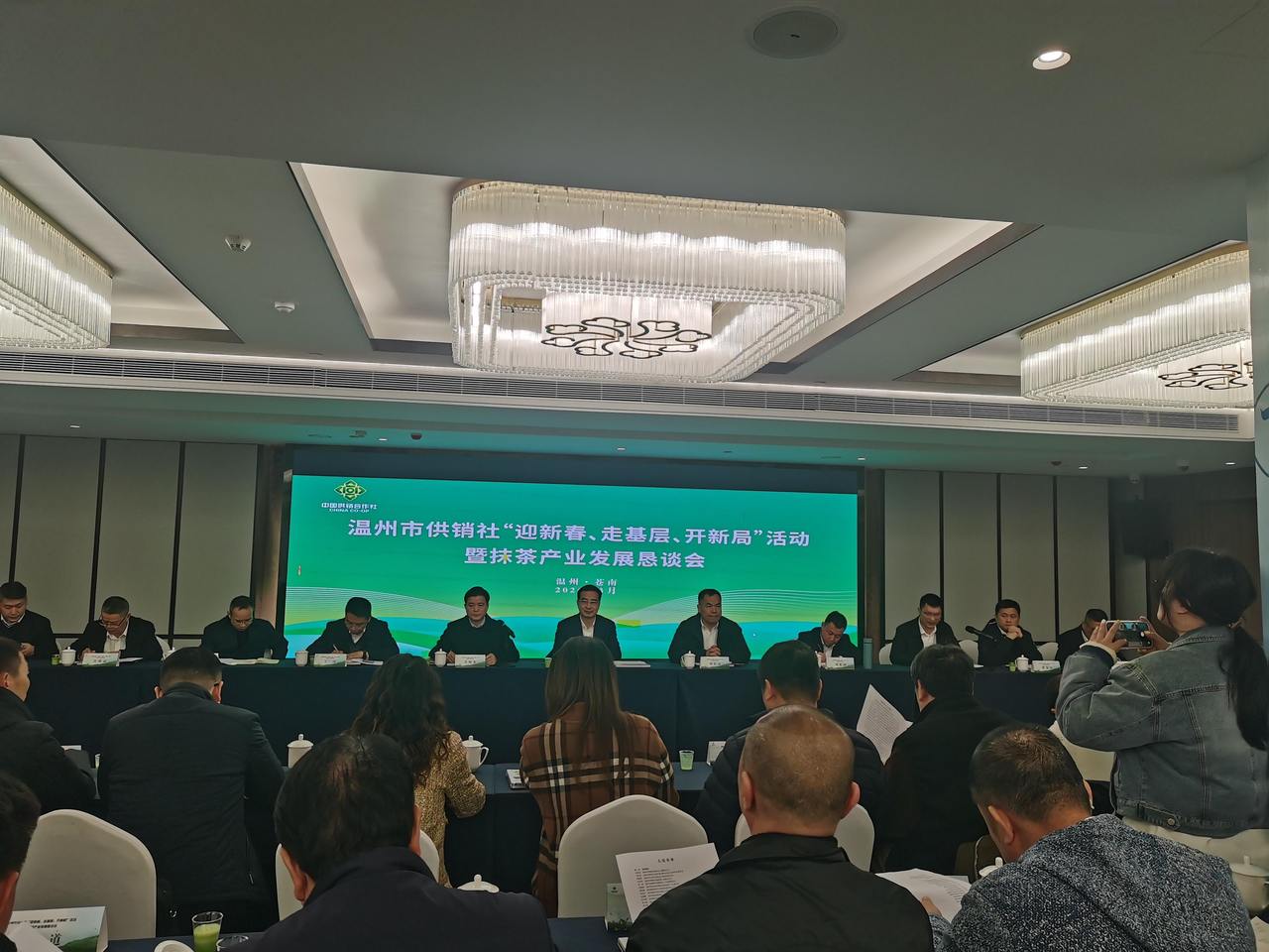 走茶园、看产线、话发展。当天下午,温州市供销社联合温州市农业农村局、苍南县召开了一场抹茶产业发展恳谈会。来自永嘉、泰顺、平阳、苍南等产茶县的政府代表、茶企负责人,与绍兴御茶村、浙茶集团九宇抹茶等国内抹茶行业的头部企业负责人围坐一起,共同探寻温州早茶新赛道。