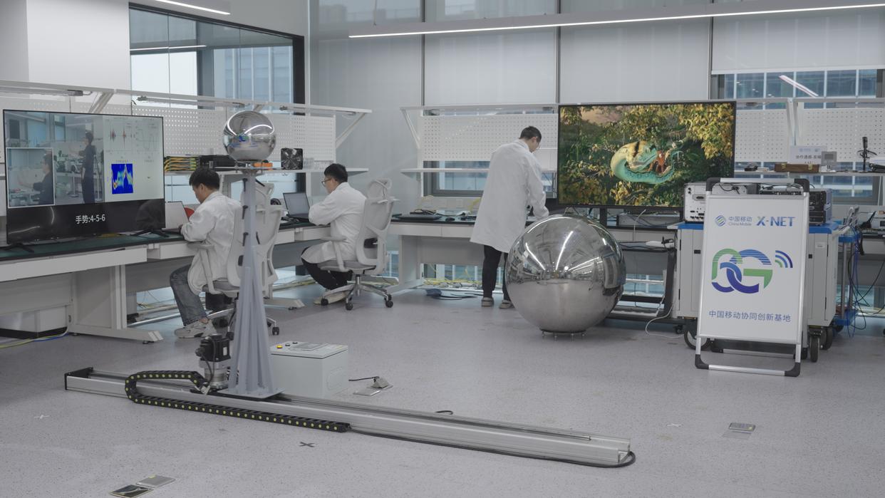 工作人员进行6G网络协作通感技术验证。新华社发