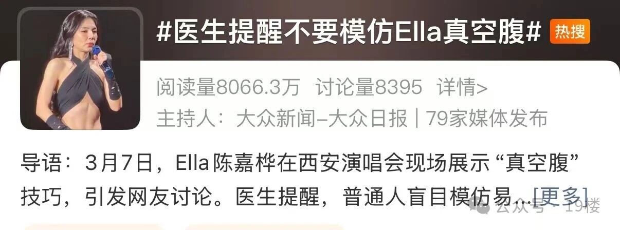 话题#医生提醒不要模仿ella真空腹#