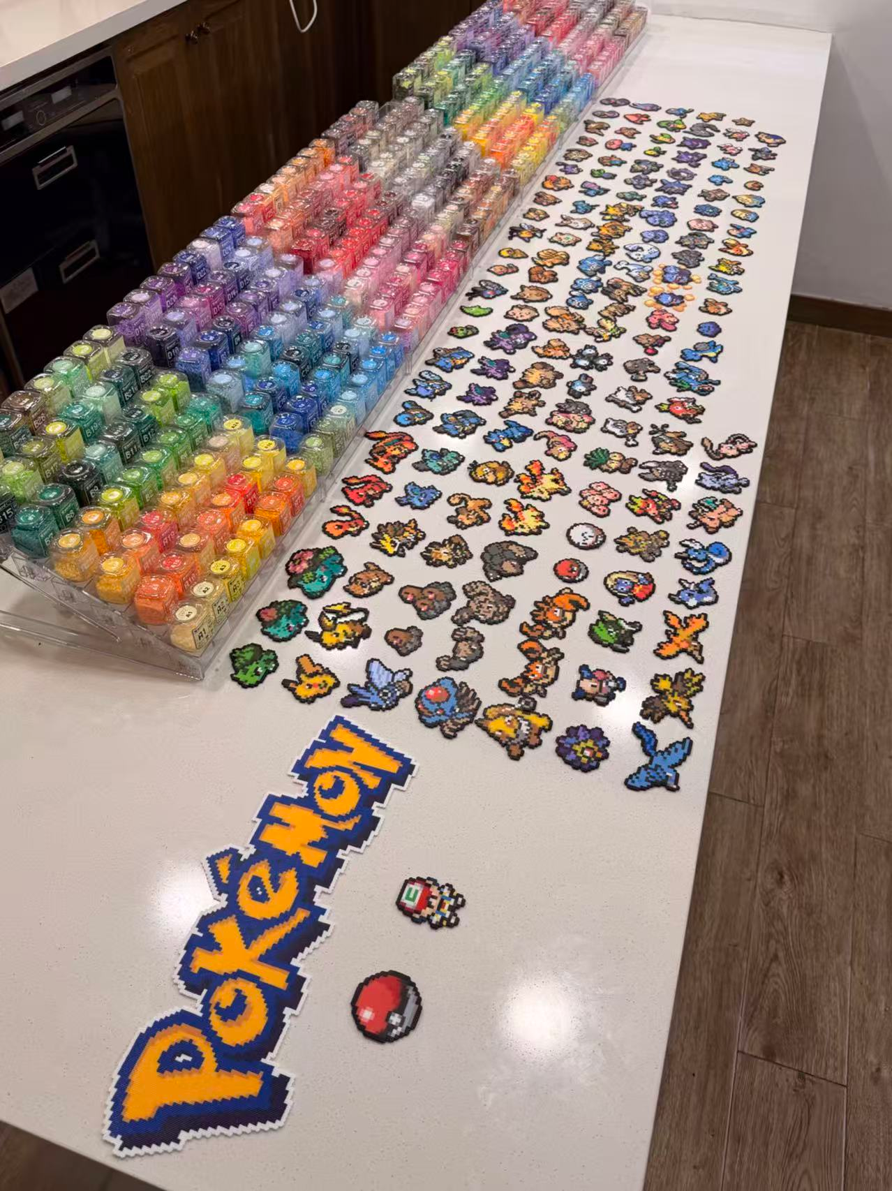 大学生佑勋则是在朋友推荐下“入坑”的。“一开始觉得这就是小孩玩的,结果拼完一个自己喜欢的动漫角色后,就彻底停不下来了。”他说,拼豆给了他一种难得的成就感,“不是每个人都会画画,但拼豆的门槛很低,只要有耐心,就能把一堆散乱的豆子变成完整的图案,那种满足感特别真实。”