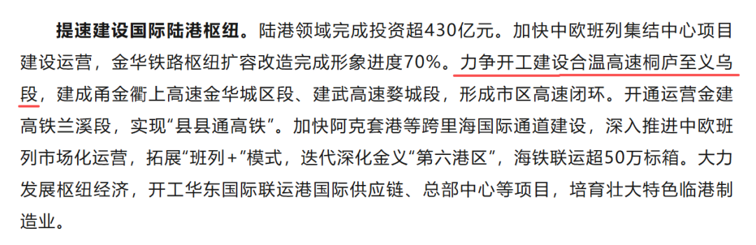 桐庐至义乌段:2026年金华市政府工作报告明确提出,今年要力争开工建设该段高速。