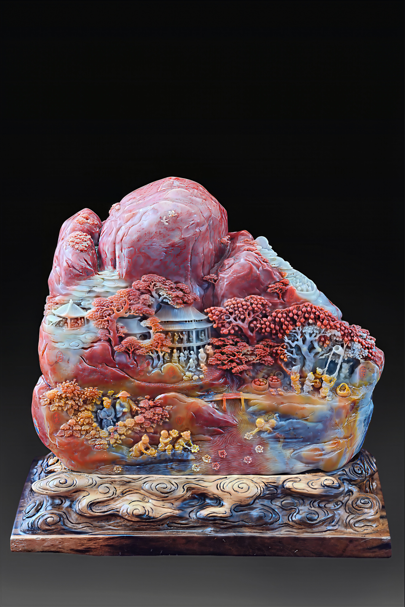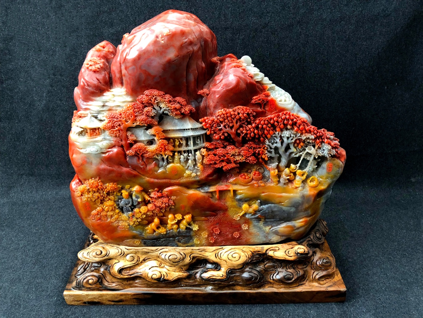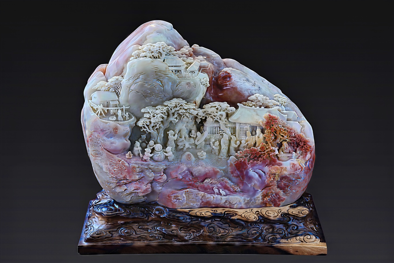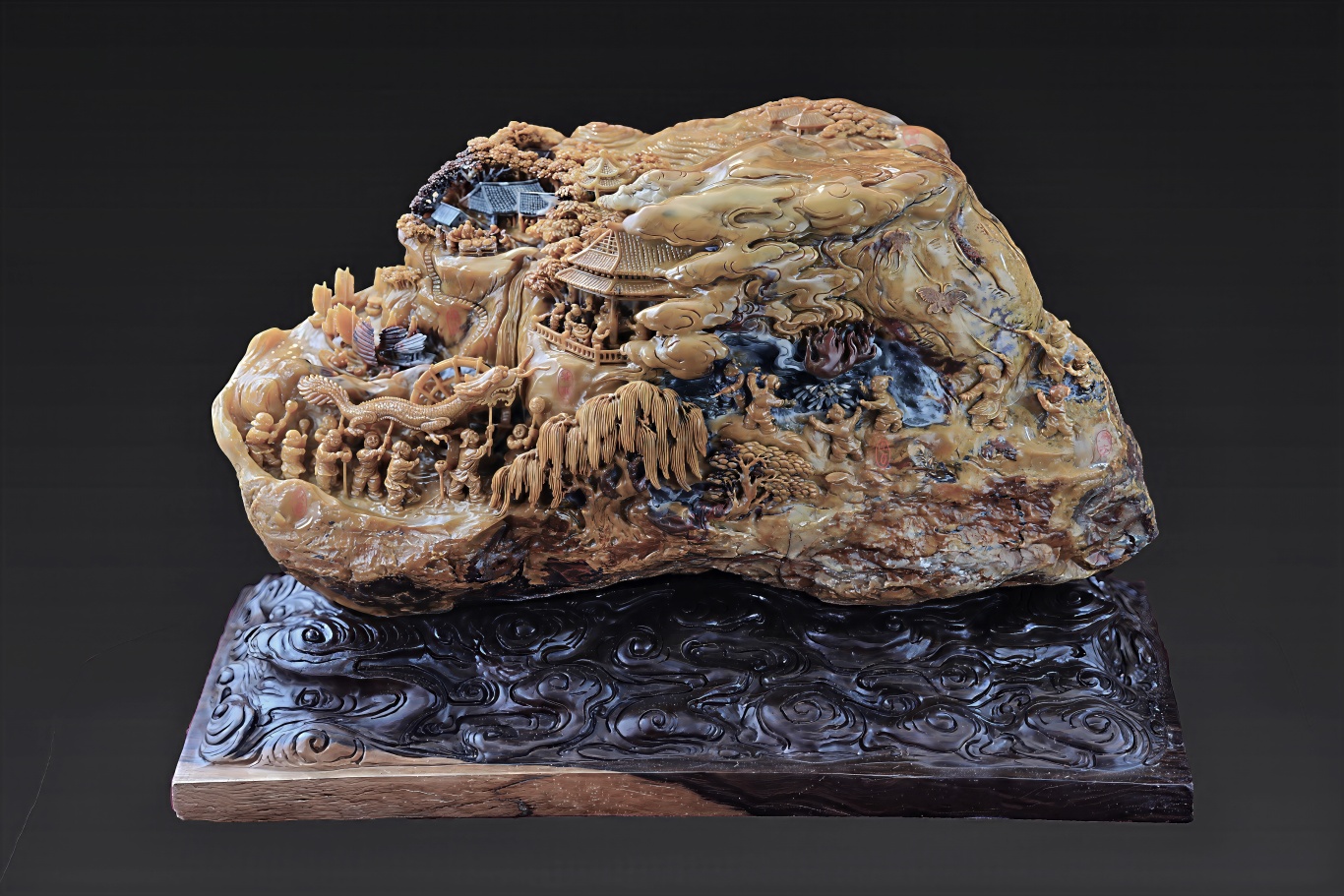 在陈顺德的精心构思下,名贵的黄、绿、赤、白四色石材被赋予了春夏秋冬的灵魂。他融合圆雕、镂雕、浮雕等多种技法,因材施艺、俏色巧雕。