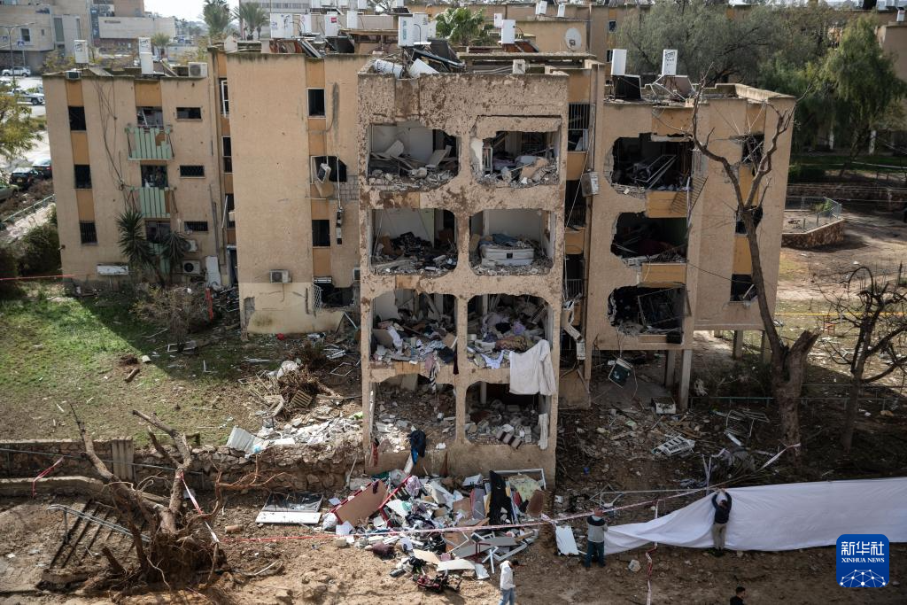 以南部城市迪莫纳和阿拉德3月21日晚遭伊朗来袭导弹击中,已造成175人受伤,其中10人伤势严重。新华社记者22日在两处袭击现场看到,多栋楼房损毁严重,一些房间墙壁坍塌,建筑材料和玻璃碎裂一地。这是3月22日在以色列南部城市阿拉德拍摄的在导弹袭击中受损的建筑。新华社记者 陈君清 摄
