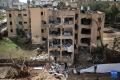 3月22日,在以色列南部城市迪莫纳,一名男子查看在导弹袭击中损毁的建筑。