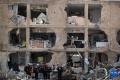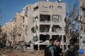 3月22日,在以色列南部城市阿拉德,当地居民查看在导弹袭击中受损的建筑。