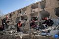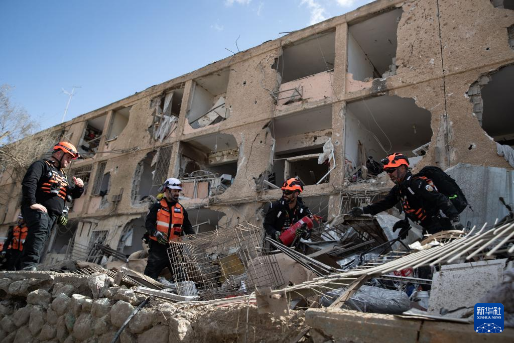 3月22日,在以色列南部城市迪莫纳,救援人员在导弹袭击现场工作。