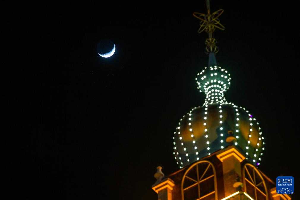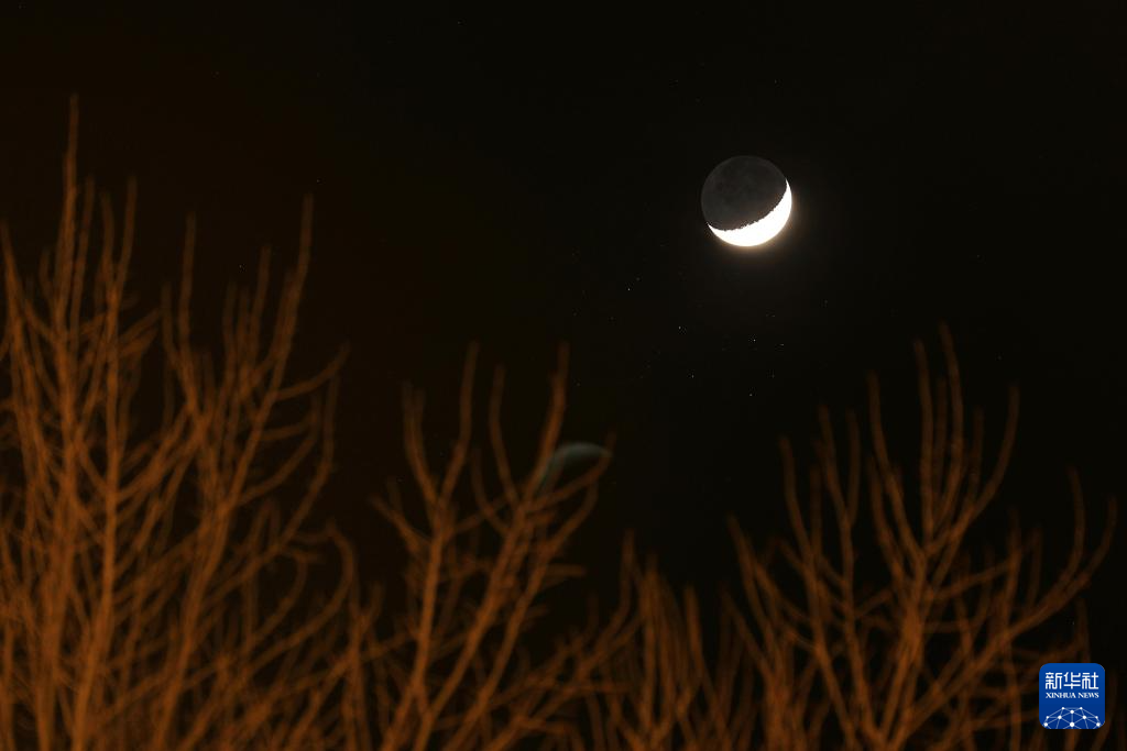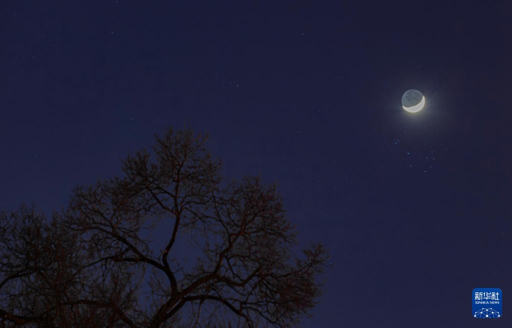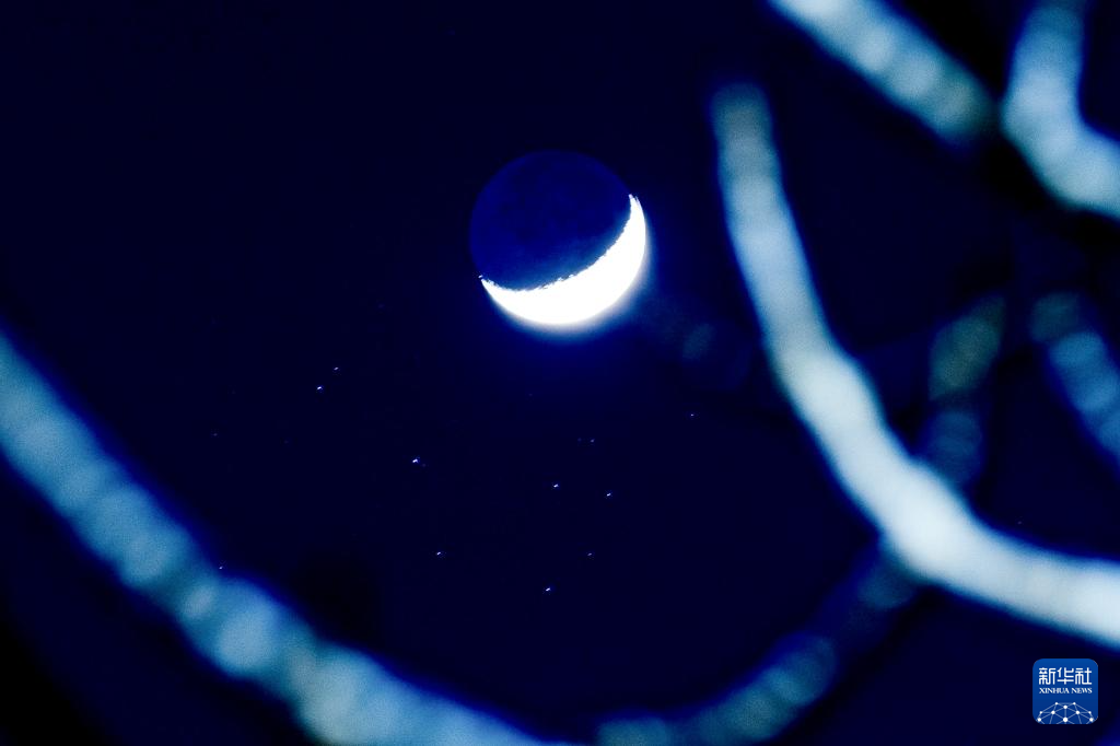 3月23日在黑龙江省牡丹江市拍摄的“昴星团伴月”景观。(王宝勋 摄)