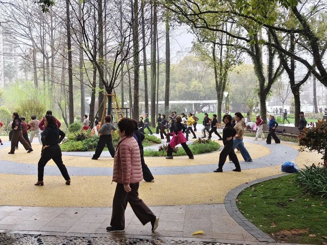 清晨,人们在林间晨练,呼吸水杉林释放的清新空气;午后,在异形廊架下小憩;傍晚,在开阔的草坪上奔跑嬉戏。这里不再是“废弃游乐场”,而是一个全龄友好、四季可赏、生态与艺术交融的城市活力空间。