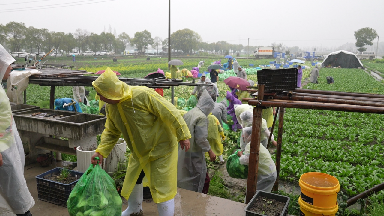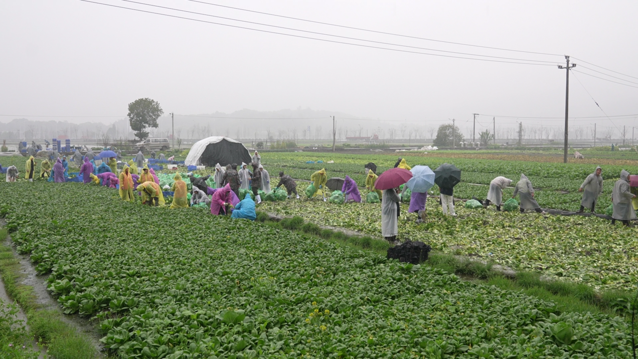 最美田间暖流,瑞安百名志愿者冒雨为江西老表抢收“救命菜”