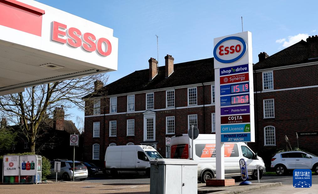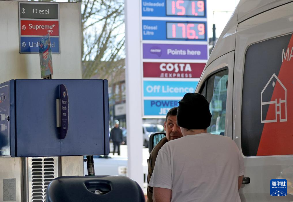 受美国和以色列与伊朗军事冲突影响,英国加油站燃油价格持续走高。3月26日,在英国伦敦一处加油站,车辆加完油后离开。新华社记者 李颖 摄