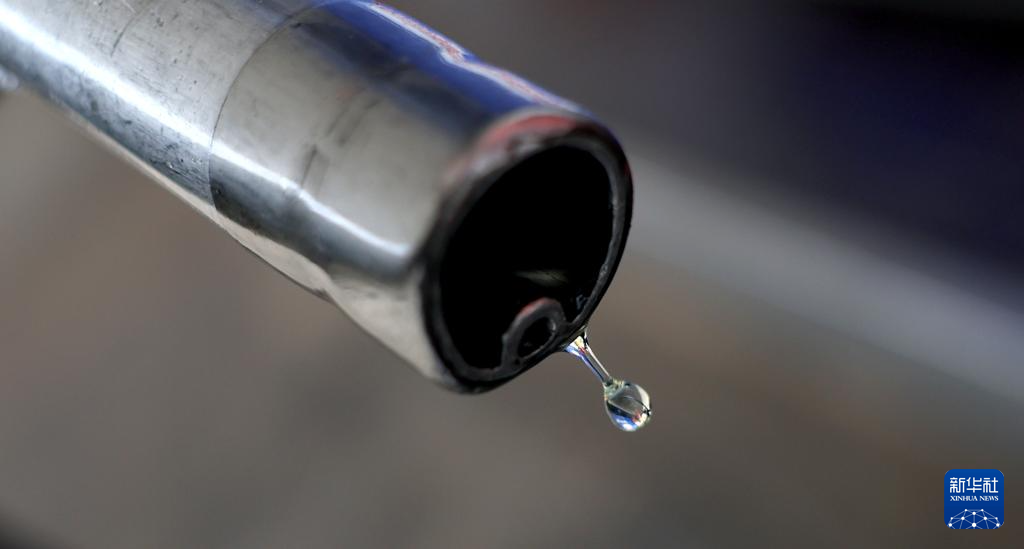 3月26日,在英国伦敦一处加油站,汽油从油枪口滴落。
