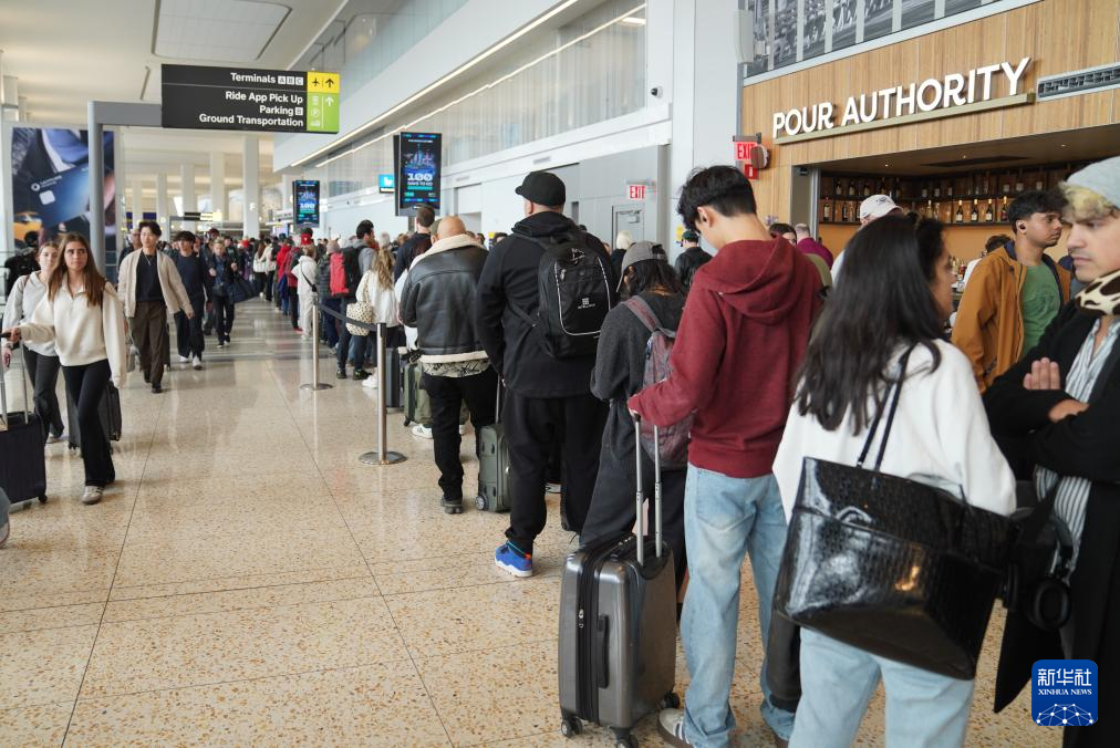 因国土安全部“停摆”持续 美国机场安检排起长队