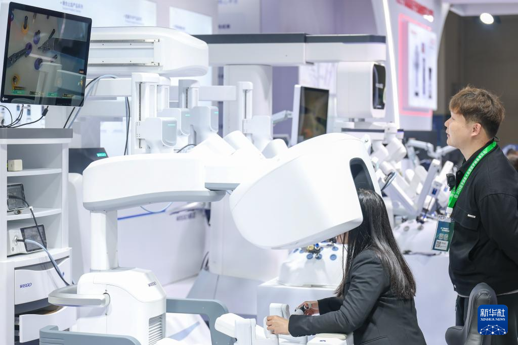 3月29日,观众在2026中国医学装备展览会上参观体验外科手术机器人。记者 黄伟 摄