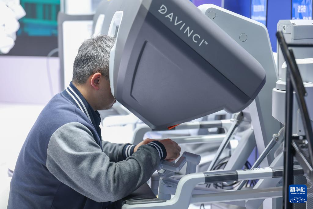 3月29日,观众在2026中国医学装备展览会现场体验达芬奇手术机器人模拟器。记者 黄伟 摄