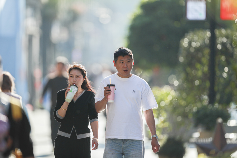 温州网讯 4月1日,在市区公园路和五马街,不少游人脱去厚衣,身着短袖短打轻松出行,街头满是轻快身影。进入4月,我市迎来晴暖好天气,最高气温达22℃,春日暖意渐浓,市民乐享好时光。