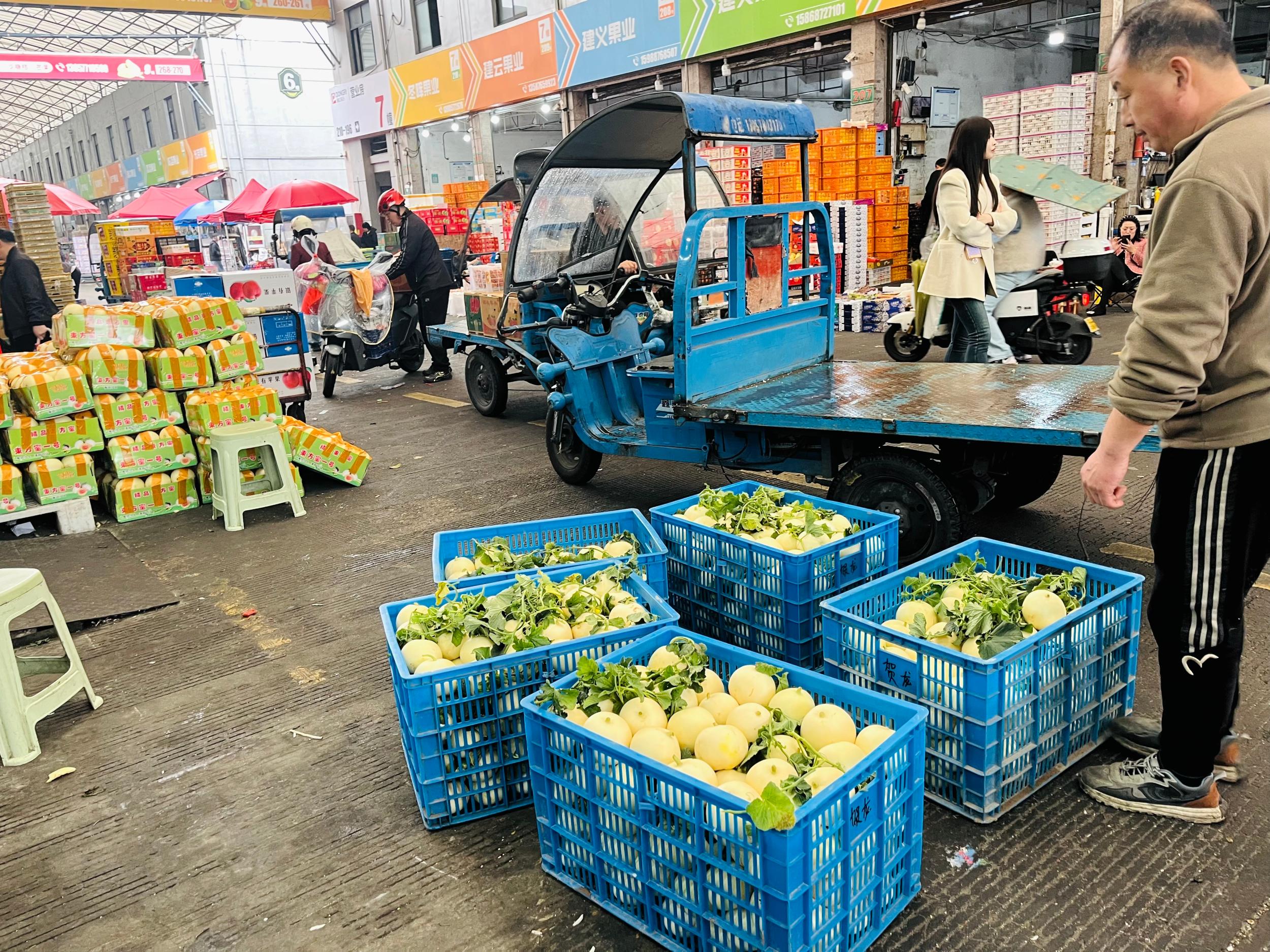 在水果批发交易市场,有从事零售水果生意的商户购买了500斤的灵昆瓜。
