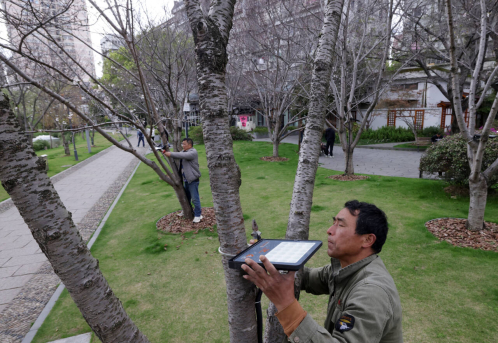 温州网讯 4月1日,温州市区马鞍池公园樱花园,工人正在园内安装灯光。去年“火”出圈的马鞍池公园春季“顶流小花”——夜樱赏花季即将到来,作为园博会公园城市(鹿城)分会场的五大博览点之一,为完善夜樱的观赏效果,公园管理方特意将樱花园内的灯光布局进行优化调整,还新增加了70余只LED投光灯,升级夜樱灯光工程。