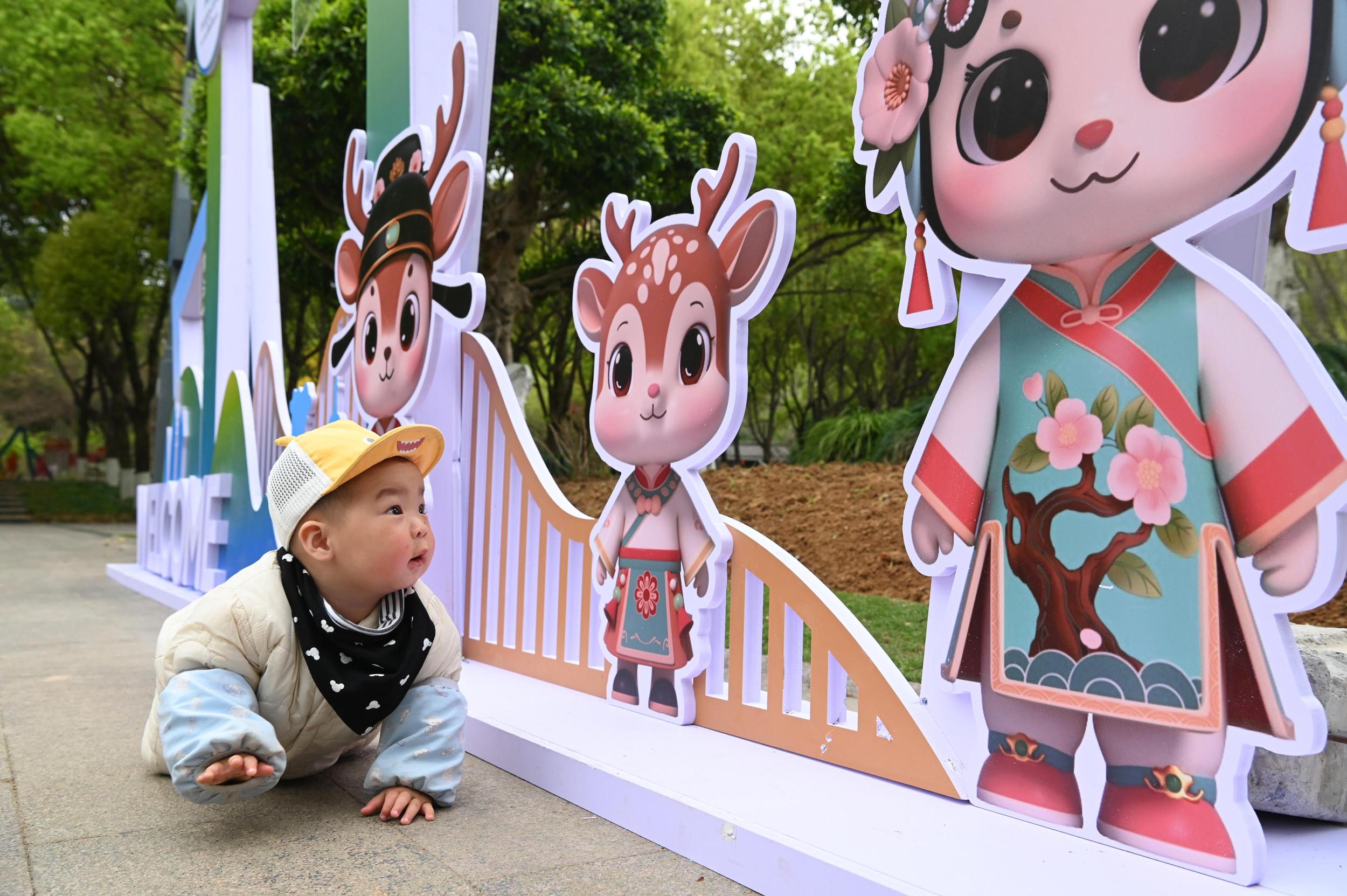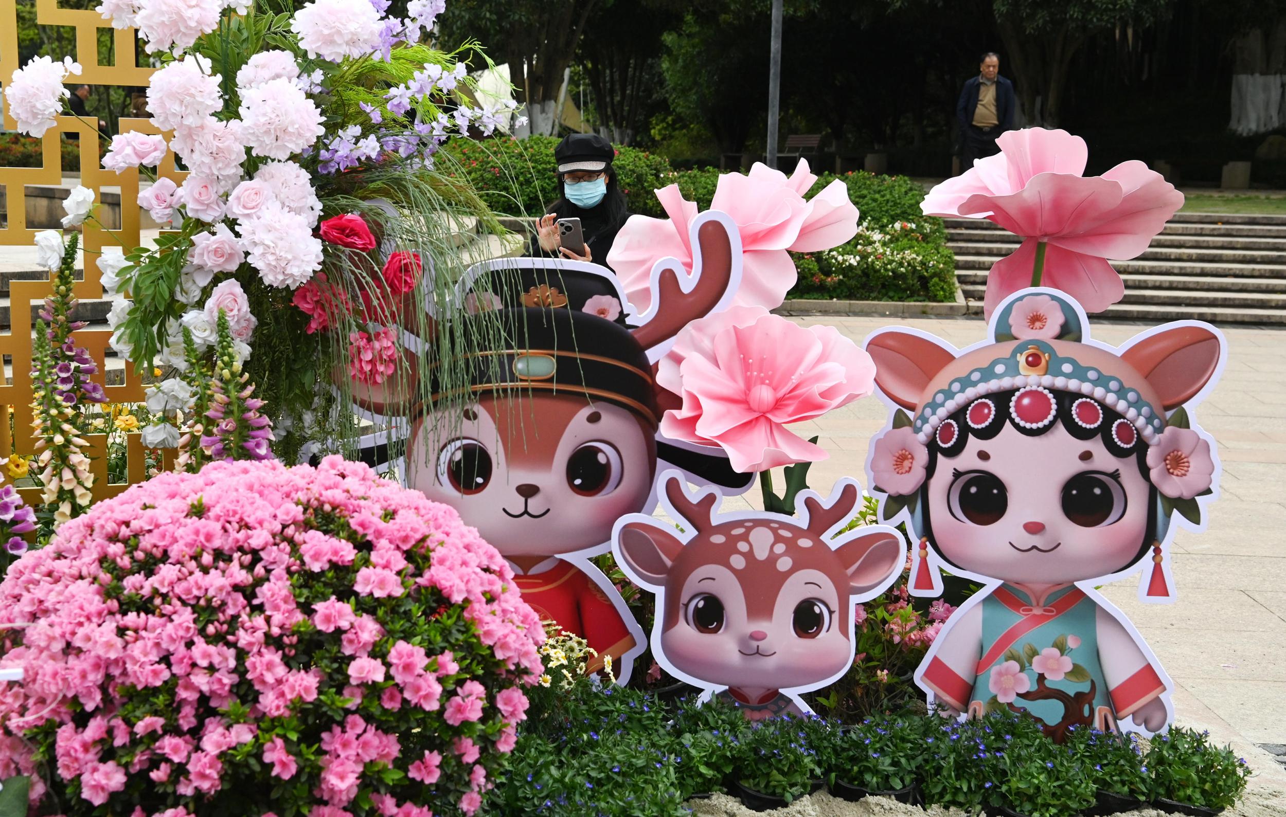 全城多处设置的园博主题景观小品融入园博吉祥物“瓯宝家族”鹿爸爸“喧喧”、鹿宝宝“呦呦”和鹿妈妈“榕榕”的萌趣形象,打造出“好拍、好玩、有记忆点”的沉浸式互动场景。李立/摄