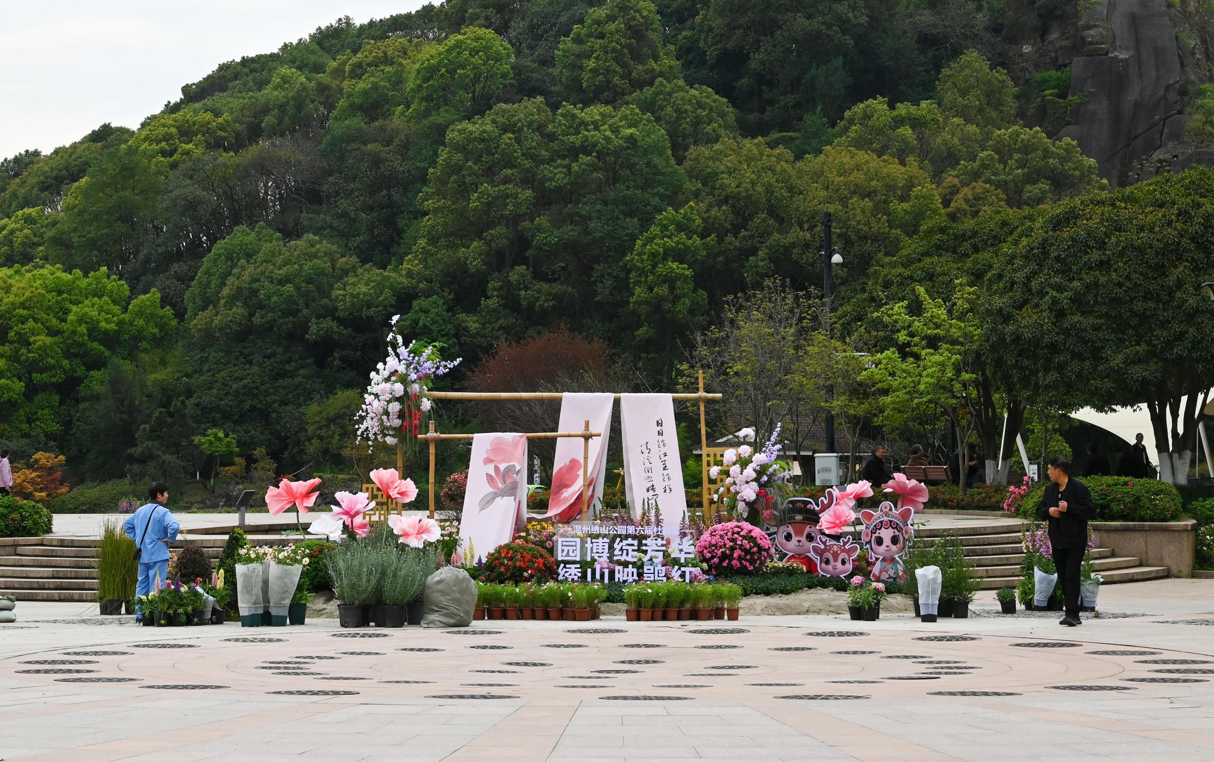 4月2日,在市区绣山公园北门、杨府山公园南门,园博主题景观小品已惊艳亮相,吸引了许多市民驻足观赏。李立/摄