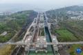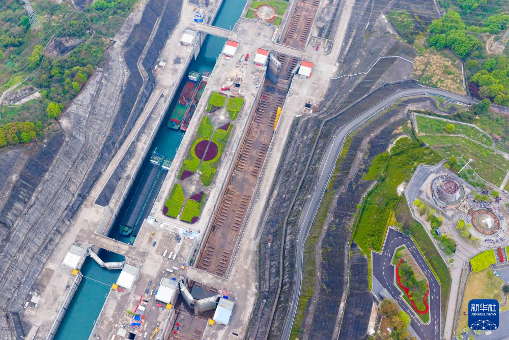4月2日,三峡枢纽南线船闸加紧检修,北线船闸有序通航(无人机照片)。郑家裕摄