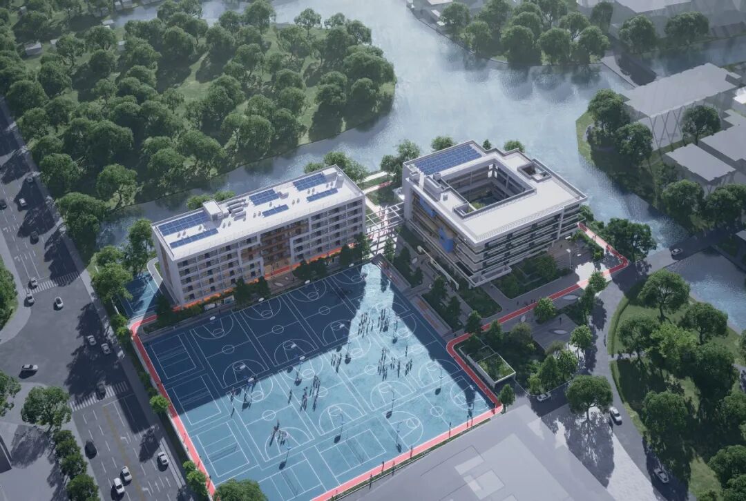扩建项目秉承“水心无界域,学境共生生”的设计理念,承袭永嘉学派叶适先生的务实精神,以多维景观、多层架空、交互通廊为笔,勾勒以学生为中心的生态校园,打造兼具水乡韵味、生态底色与现代学术氛围的新空间。