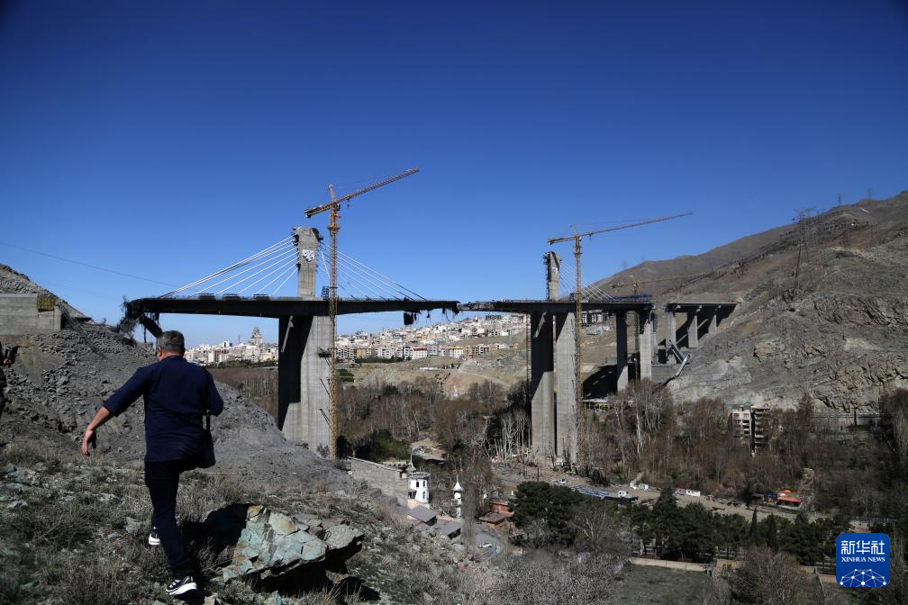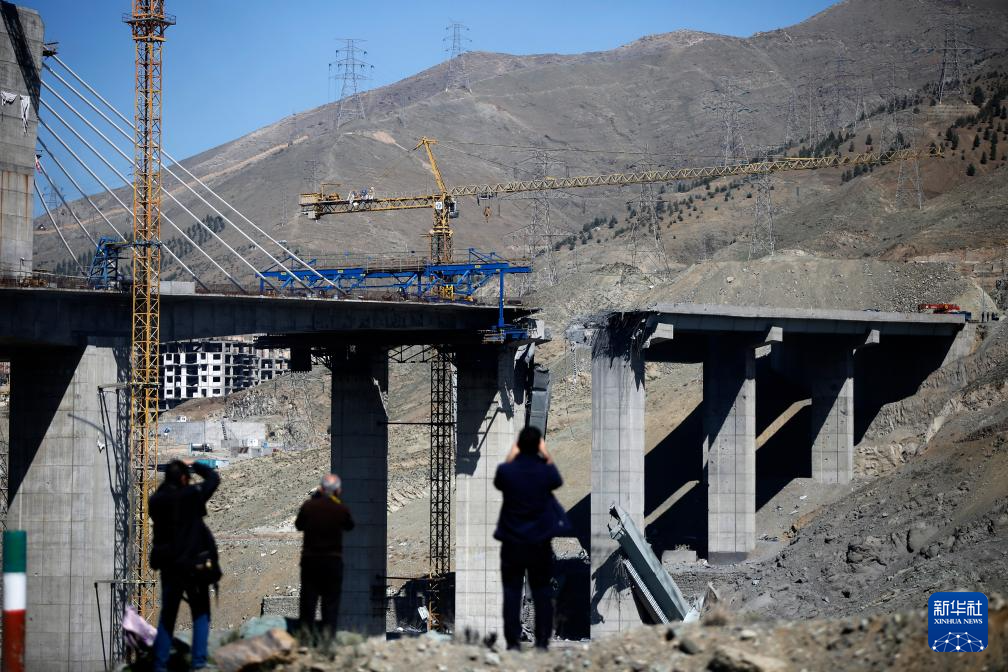这座大桥连接伊朗首都德黑兰与第四大城市卡拉季,获称中东最高桥梁、伊朗标志性工程杰作,尚未通车。大桥2日遭美国和以色列两次空袭受损。据伊朗媒体报道,空袭已致13人遇难,还造成近百人受伤。这是4月3日拍摄的伊朗卡拉季市贝伊克公路桥遭空袭受损状况。