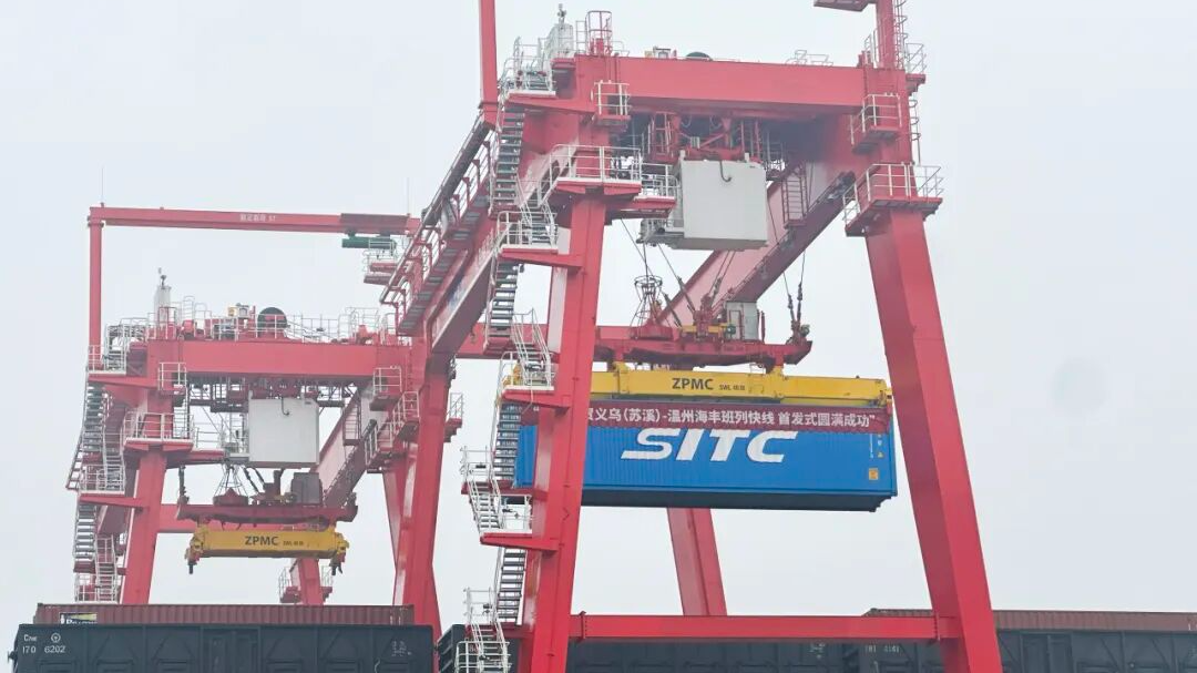 “义乌(苏溪)-温州港”海铁联运班列采用“铁路+海运”模式运营,集装箱首先从义乌(苏溪)站乘火车抵达温州后,再经6天左右海运,便可直达泰国、缅甸等东南亚国家。该班列的开行,有效打通了“内陆无水港”与“沿海枢纽港”之间的物流梗阻,让义乌及周边地区的小商品、机电产品等优势货品更加高效地走向东南亚。该班列的开通既标志着浙中地区再添一条高效衔接“铁路+海运”的跨境贸易快速通道,也代表温州港的辐射范围进一步向内陆延伸,形成“港铁联动、海陆互济”的发展新格局。