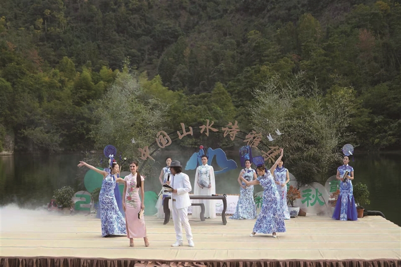改造提升的重点之一就是“金山十景”:新增了从山上倾泻而下的人工瀑布、融入永嘉学派典故的建筑小品,以及可俯瞰楠溪江的网红打卡点“水镜台”。“金山十景”一侧的金谷塘已变身为演艺平台,塘中央设有舞台;将水汇入金谷塘的金谷涧中也增设了游步道,便于游客戏水。