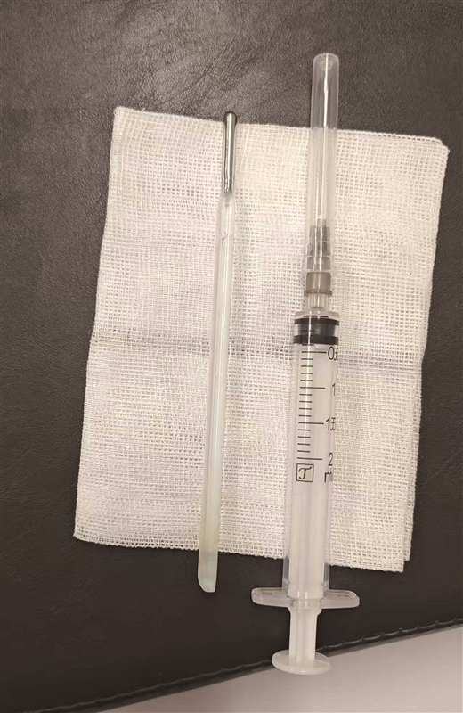 该院内镜中心医护团队开展内镜下取物操作。由于体温计滞留时间长、位置深,且毗邻胆管胰管,操作空间狭窄,稍有不慎便会损伤肠壁。该团队在相应器械的辅助下精准定位,用圈套器套住体温计一端,缓慢轻柔提拉,经20分钟努力终于将其完整取出,取出的体温计除刻度消失外,外观完好。