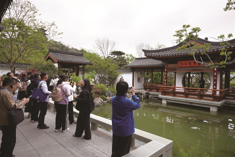 当天上午,媒体记者一行走进园博园北园。北园踞湖山之间,依托环湖“千年诗路”串联核心地标与城市展园,集中展现中华诗意画境与瓯越传统文脉。