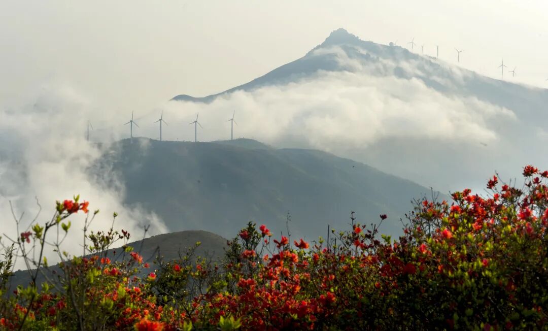 此刻,笔架山的杜鹃花已经开放,一簇簇、一丛丛杜鹃,沿着山脊肆意舒展,风一吹,花枝轻摇,花香漫溢山间。