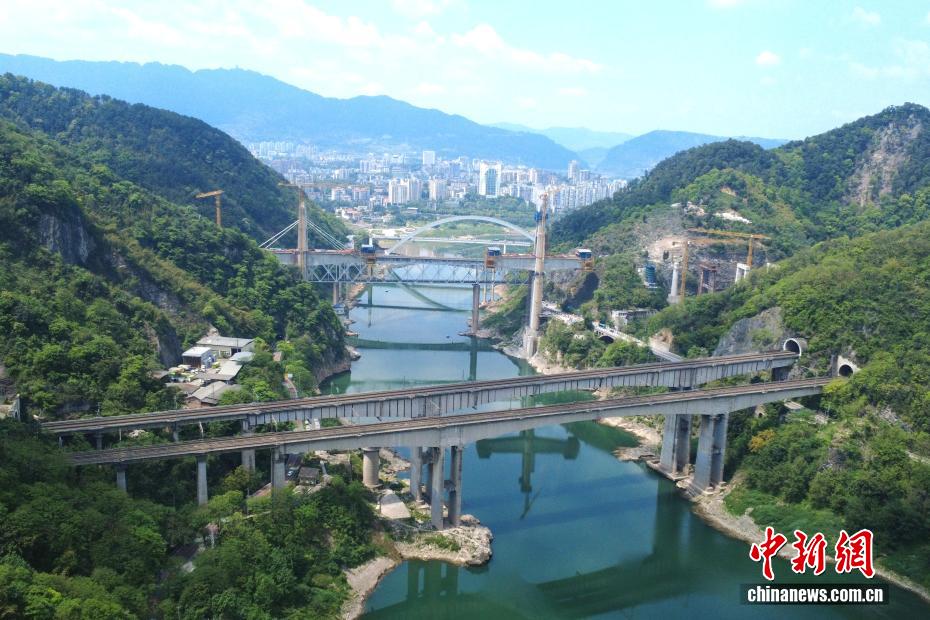 4月9日,记者在重庆北碚看到,嘉陵江上密集排列8座公路、铁路跨江大桥,形成“八桥叠翠”景观,远观非常震撼。记者 肖江川 摄