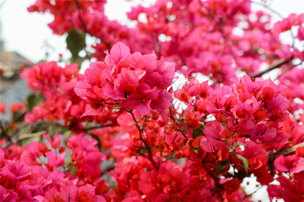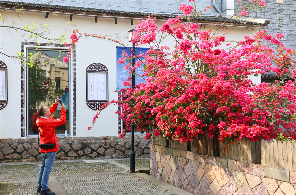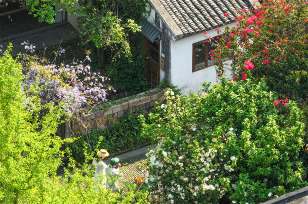 连日来,位于瓯海区茶山街道的山根艺术村,绣球与三角梅开得正盛。摄影: 刘伟 蔡温瑞