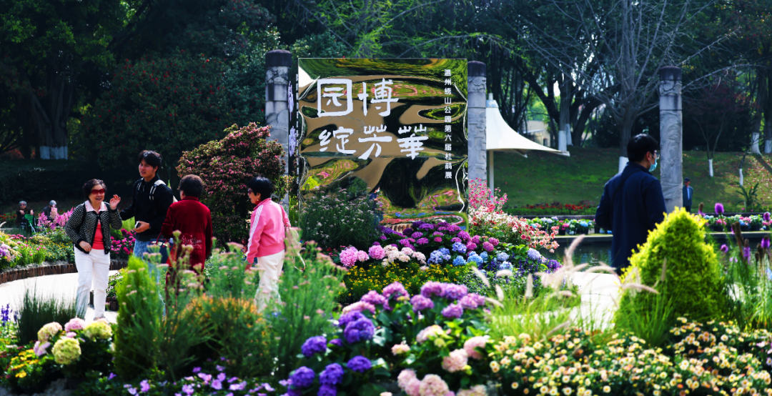 步入公园,南北主入口的花境展示区率先映入眼帘。摒弃传统整齐的造型,这里以“师法自然”为理念,搭配绣球与时令草花,营造出层次丰富、野趣盎然的自然画卷。入口处的“园博绽芳华、绣山映鹃红”不锈钢立方体,如一颗璀璨宝石,宣告花展的开启。