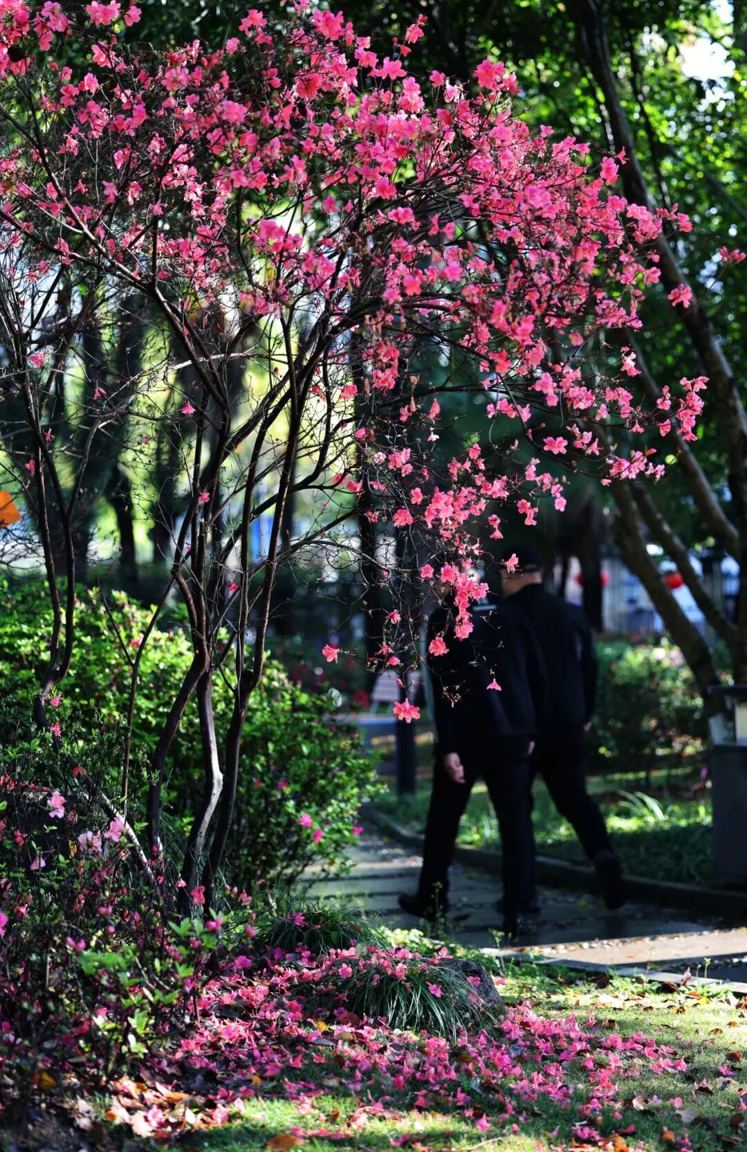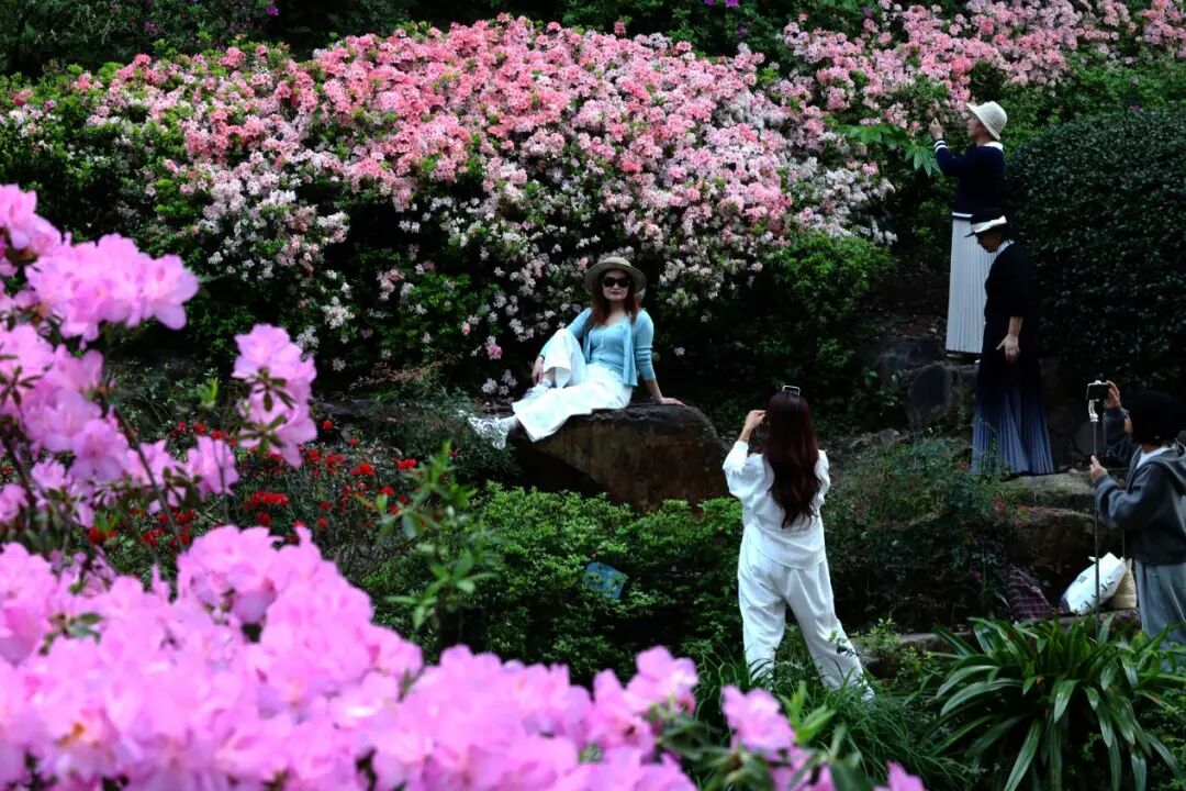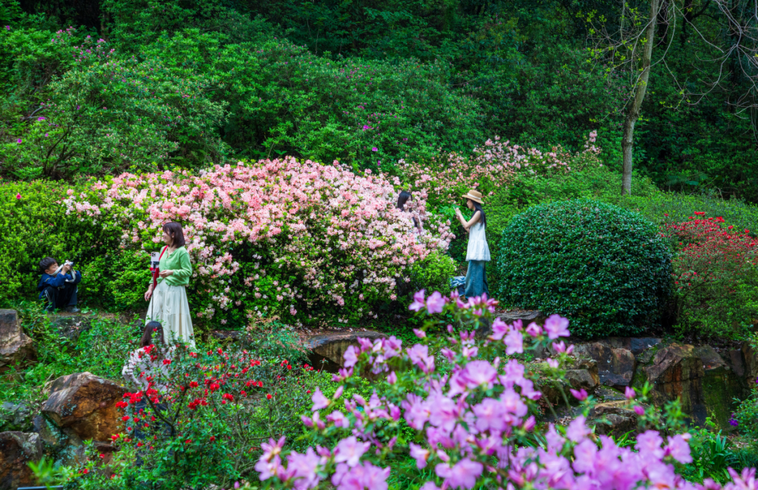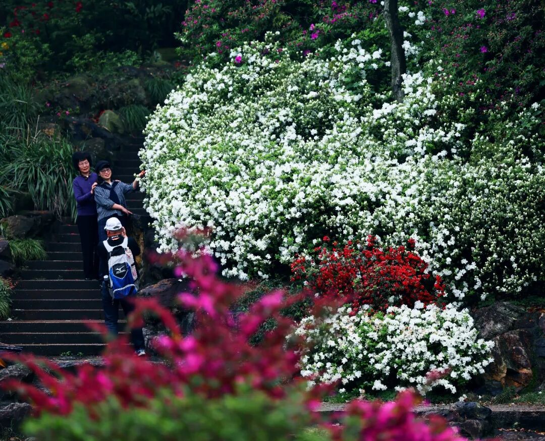 目前,绣山公园杜鹃已进入最佳观赏期。火烈鸟、粉妆楼、高杆映山红正值盛花期,如霞似锦,染红溪畔山坡,纺绸等晚花品种也已陆续绽放,延续这场春日盛事。