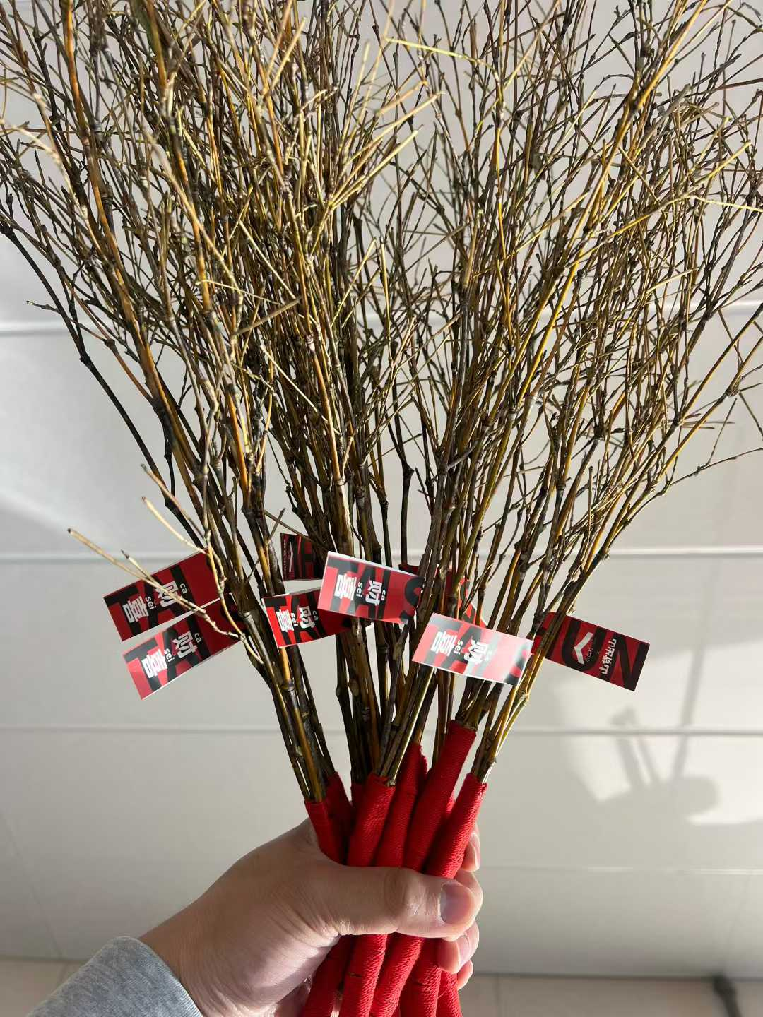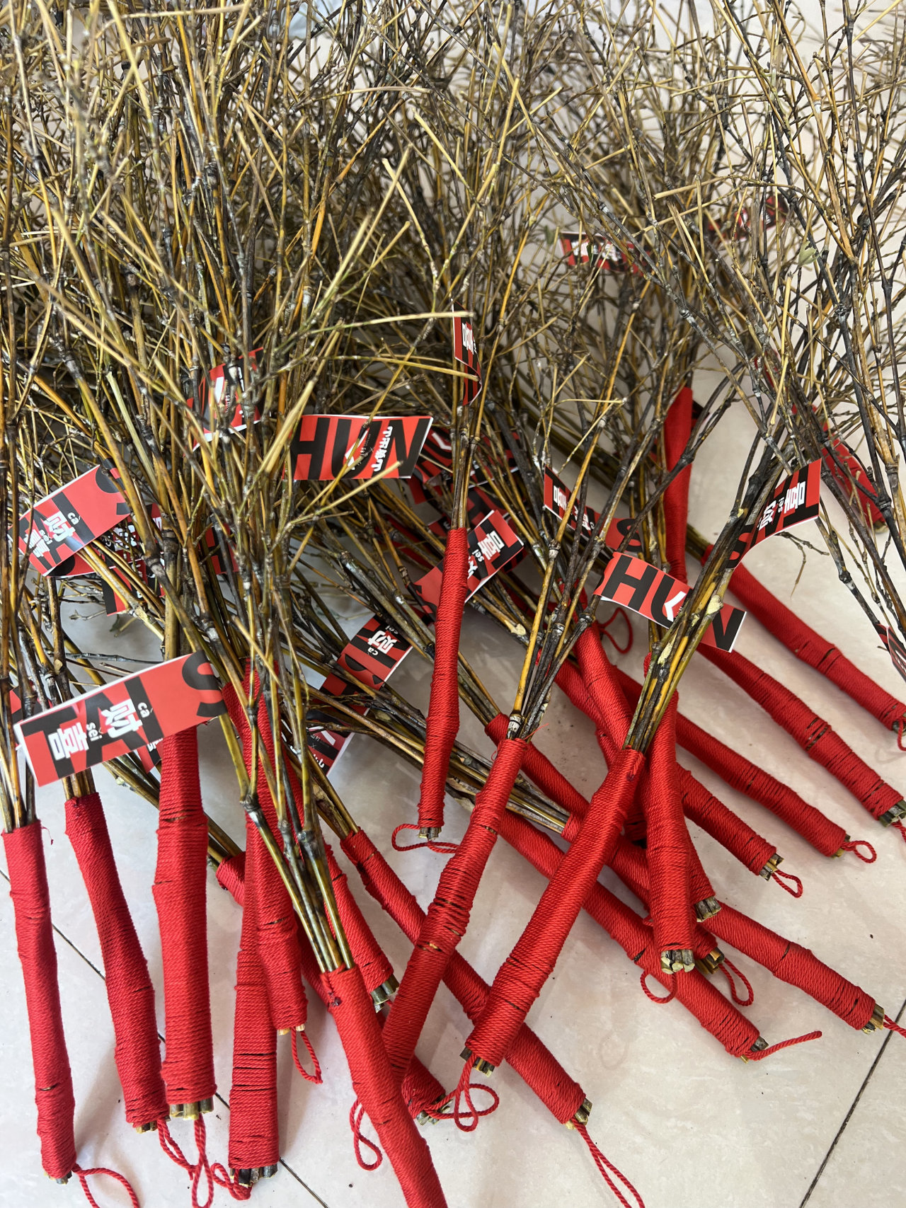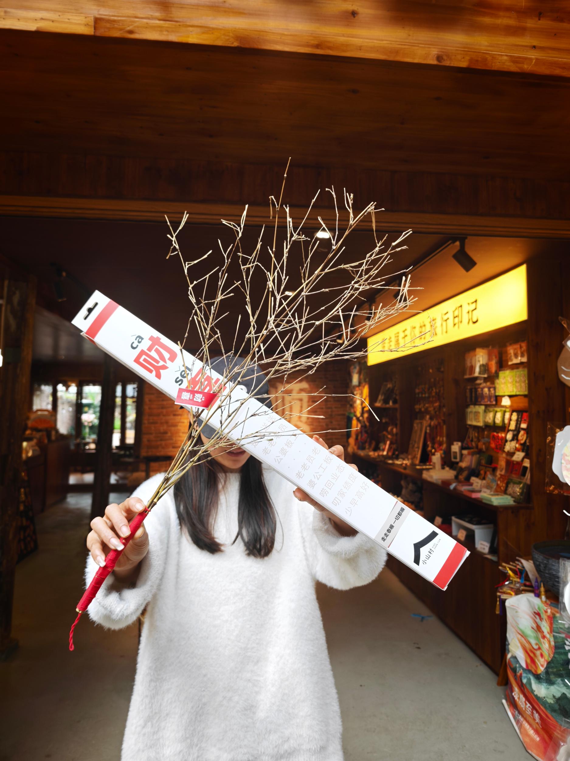 年底的用工问题同样突出,农村酒席频繁,占用了大量劳动力,村民们也不愿在节前将家中弄得杂乱。第一批“财喜”,就是这样靠泰顺多个乡镇协同,一点点凑出来的。蔡闽参的手机里,至今还存着那段时间的视频:老人们坐在家门口,持刀削去杂枝,反复打磨至手感光滑,再细心缠上红绳、贴上标签。