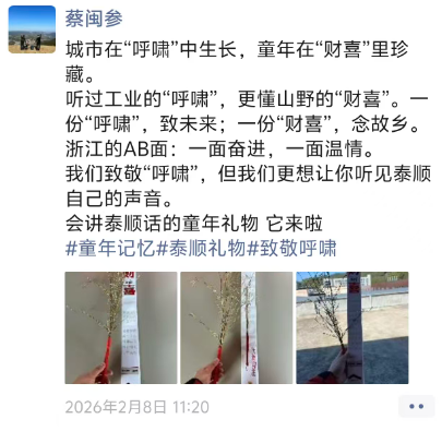 这种情感共鸣直接转化为购买热情。“‘财喜’名字喜庆,刚好凑在春节这个时间节点,价格也只有9.9元,首批1200多把几天内便销售一空。”春节期间,蔡闽参奔波在泰顺各景区间送货,廊桥文化园、南浦溪、库村等泰顺主要景区,都能看到“财喜”的身影。不少来泰顺旅游的外地游客,也将这份“温州礼物”带回家。