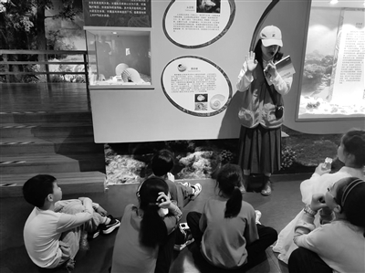 学生在听志愿者讲解