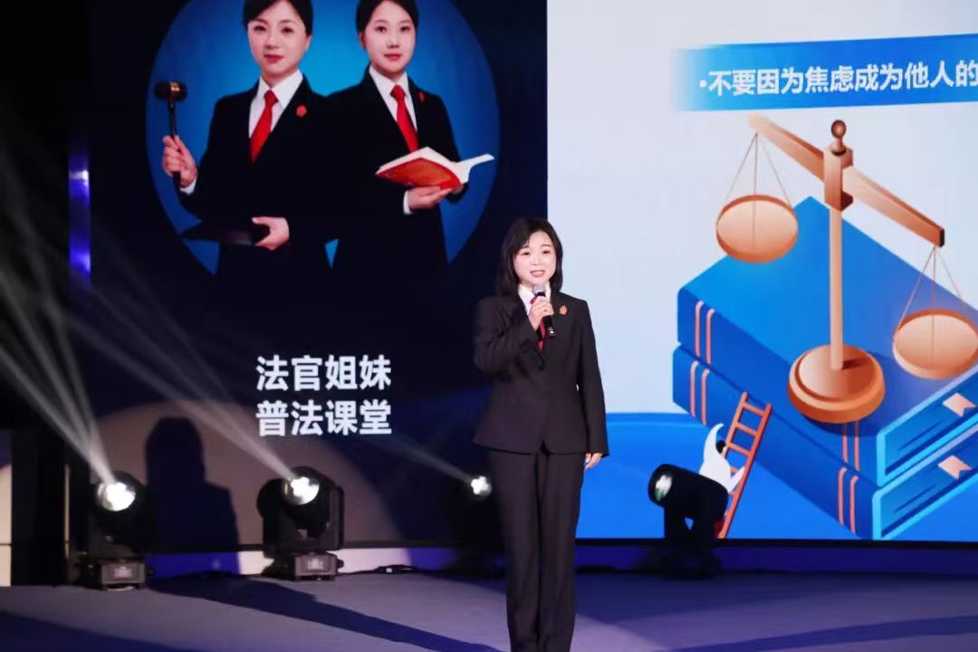 面对新技术带来的新挑战,“数智时代·法治引领未来路”篇章直击当下热点。短剧《AI“陷”形记》还原了企业遭遇AI造谣诋毁及诈骗的困境,法官现场指引企业识破骗局;普法“小智”则针对“AI误导能否索赔”“企业AI数据营销边界”等前沿问题进行了清晰的法律界定,将复杂的AI法律责任转化为实用的企业合规指引。
