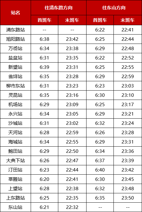 首末班车时间不变,具体如下: