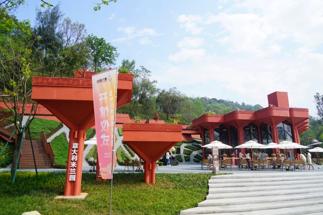 意大利博埃里建筑设计事务所中国合伙人、总经理胥一波阐述了设计理念:“意大利馆体现了传统与未来的交融,以古典教堂柱廊为形态基础,结合屋顶花园与立体绿化,呼应园博园的自然主题。同时,设计中大胆运用醒目的红色元素,使其成为园区内具有辨识度的打卡点。”