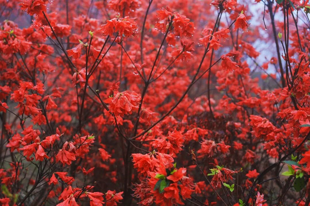 漫山杜鹃在蒙蒙细雨中愈发娇艳欲滴,别有一番诗意。摄影: 林鑫