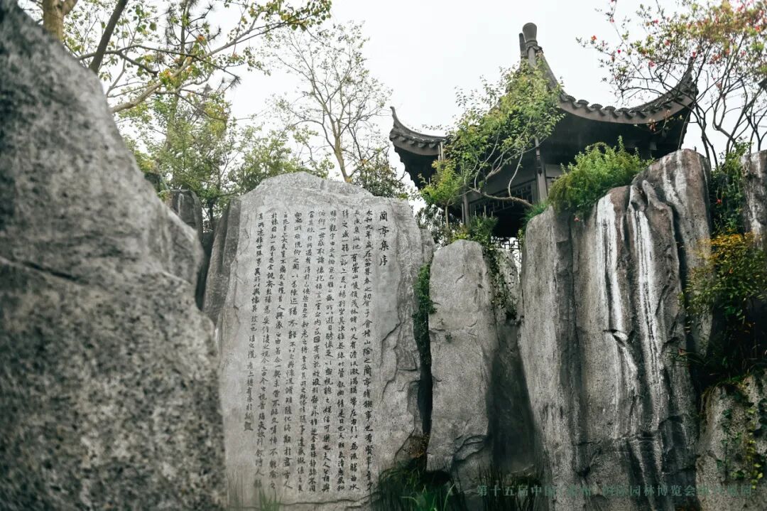园中有水。水是绍兴的命脉。从大禹治水到马臻筑湖,从纤夫的号角到乌篷船的桨声,这座水乡泽国的每一寸土地都浸透着水的灵性。园中的溪流不张扬,只是静静蜿蜒。水边有清流坊,匾上“清流”“惠风”四字,取自《兰亭集序》。一千六百多年前的那个春天,王羲之与四十一位友人在会稽山阴的兰亭,临水而坐,流觞赋诗,写下了天下第一行书。那份风流,那份从容,至今仍在绍兴的血脉里流淌。园中特意设了曲水流觞——不是为了复刻,而是为了提醒:中国人的诗意生活,从来不是书本里的陈迹。