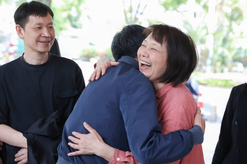 在学校的欢迎屏幕上,打出了欢迎何秀瑾老师、项飙教授返校的字样。八中副校长陈杰笑言,到了母亲的学校,“项教授就是附带”。看着校方这份温情,项妈妈难掩激动之情,用双手捂住了泛红的眼眶。
